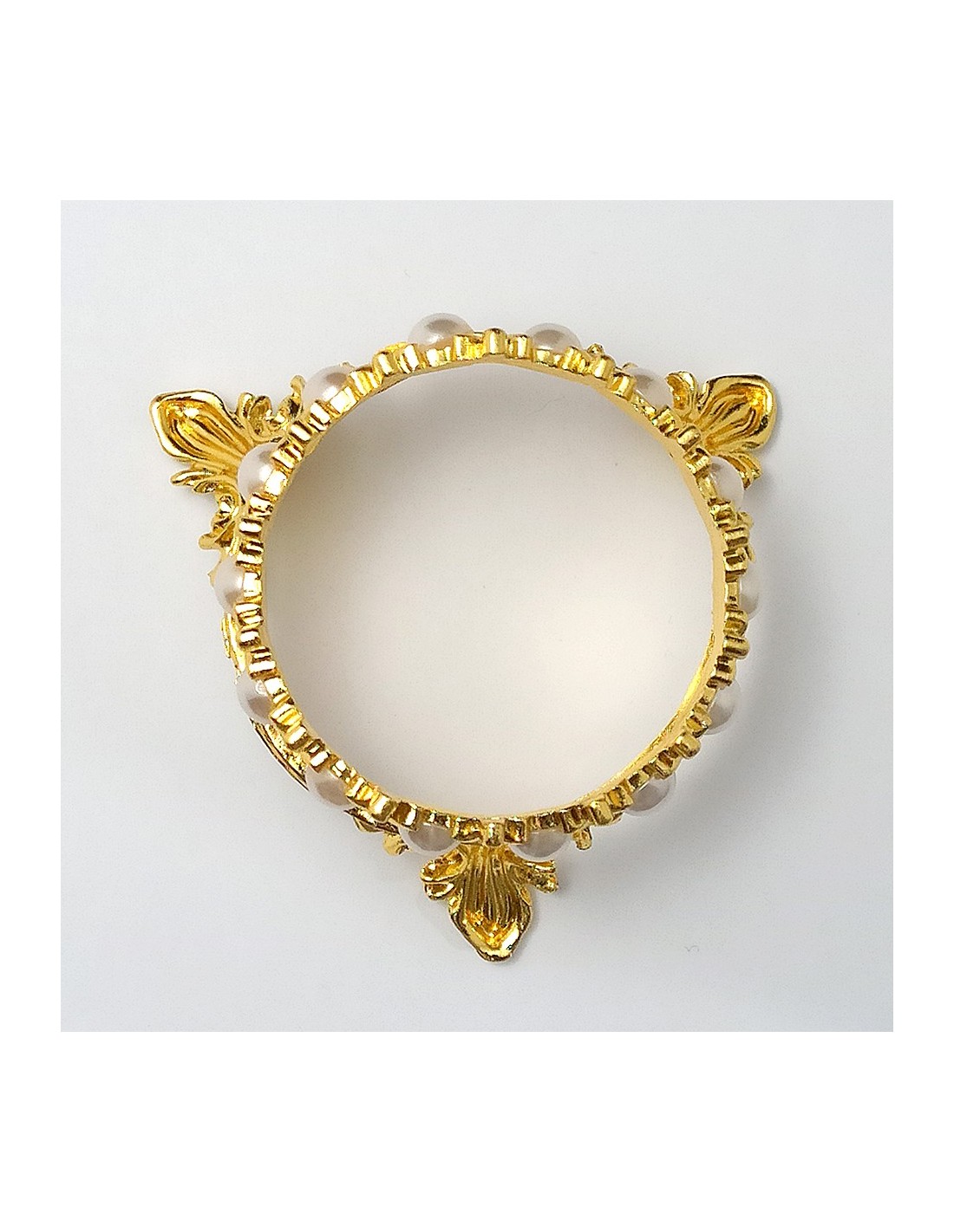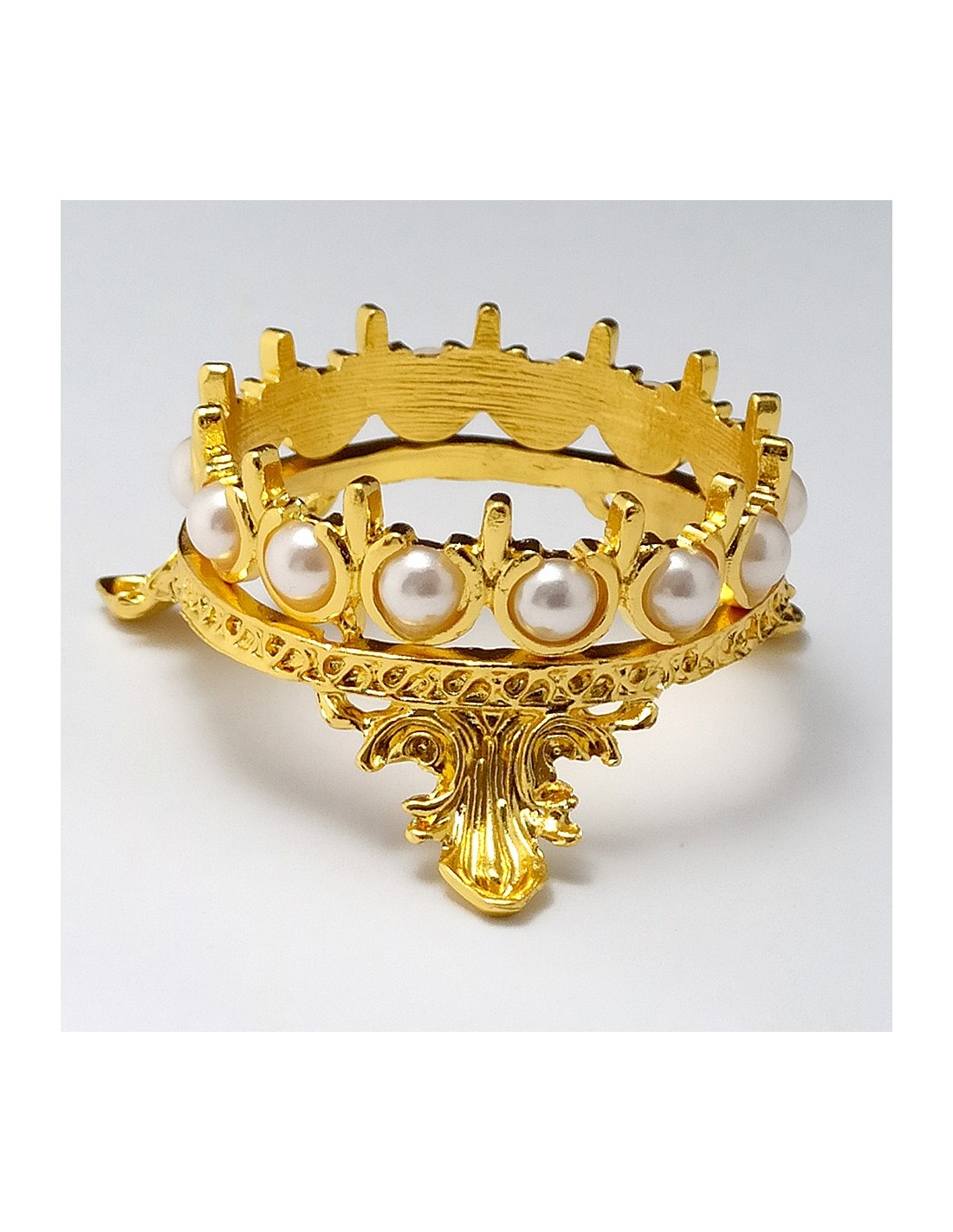 Suport din metal în formă de coroniță, decorat cu perluțe albe.