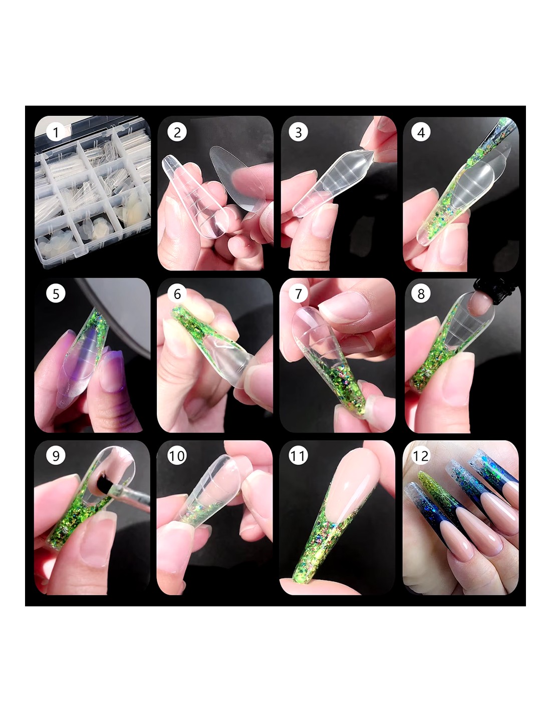 În set gasiti 12 marimi diferite pentru a potrivi tipsul cu dimensiunea unghiilor naturale. SFAT! nu folositi o marime mai mica decat unghia naturala.