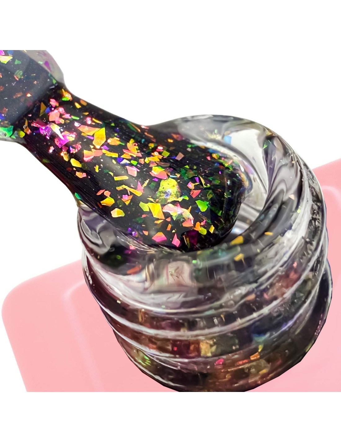 - 🌈 Finish cu fulgi multicolori – pentru un efect cameleonic.