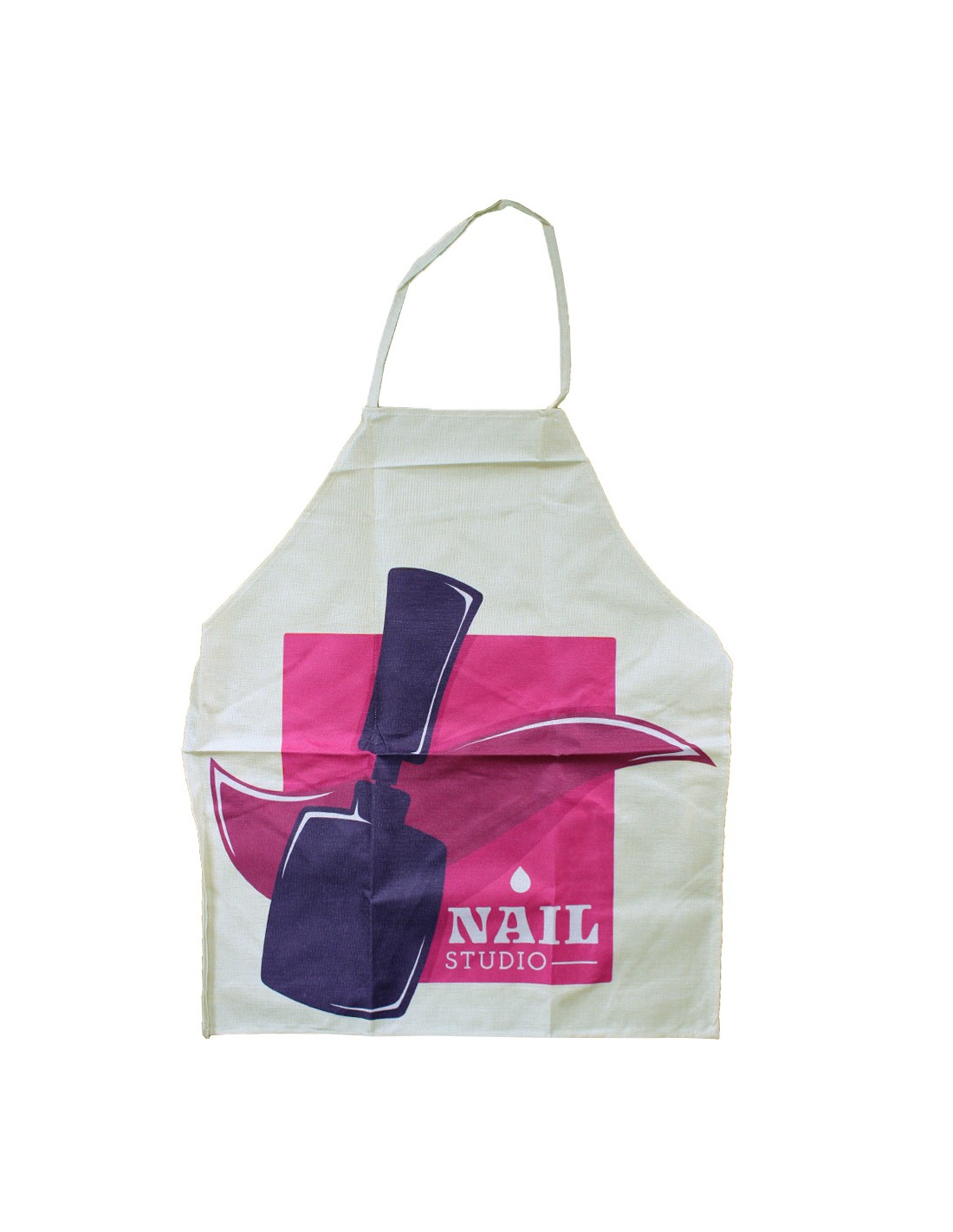 Șorț din material impermeabil, de culoare bej cu roz pentru protecția hainelor de praful rezultat la pilire.