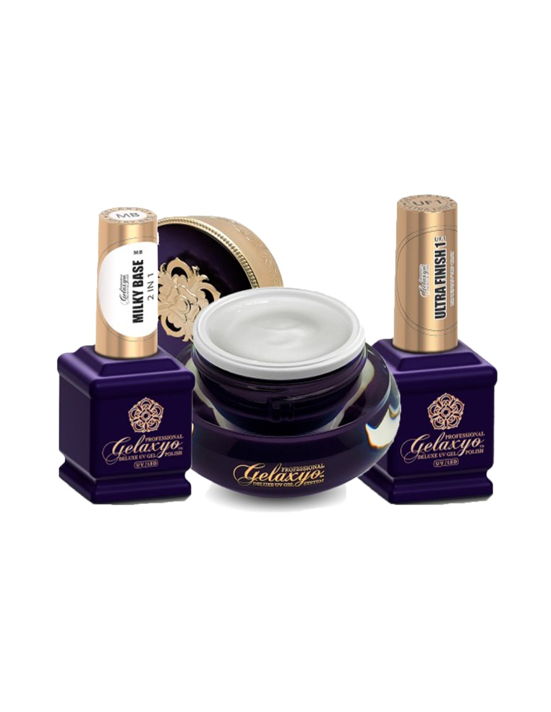 Pachetul GELAXYO MILKY SET reunește 3 produse esențiale pentru realizarea unui serviciu complet de salon: bază, structură și finish.