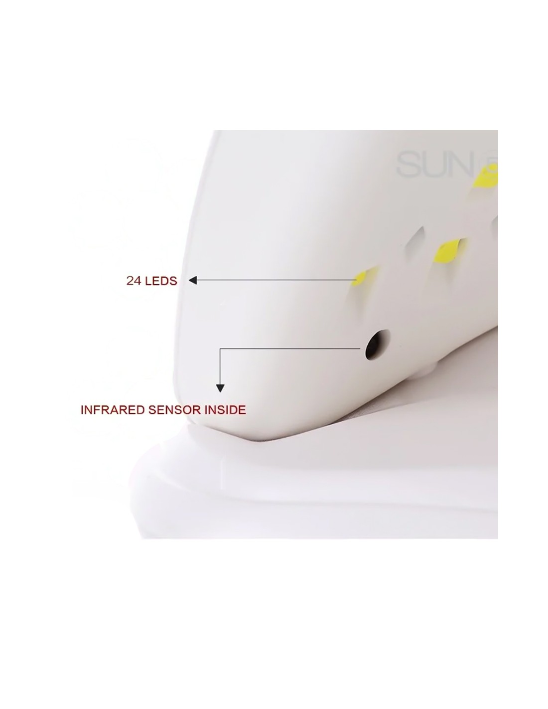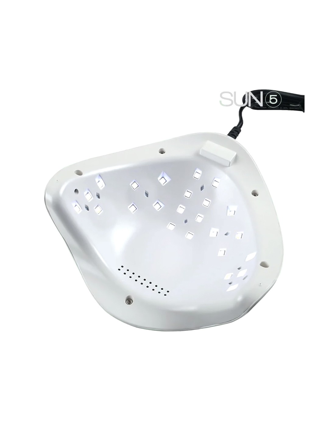 Lampa de manichiură SUN5 este o lampă echipată cu cea mai recentă tehnologie LED, foarte populară printre tehnicienii de unghii deoarece este ergonomică și fiabilă. De asemenea are un design modern și plăcut, care va înfrumuseța orice birou de lucru! Lampa este automatizată cu timer cu 4 butoane și este prevăzută cu funcția ”Low-heat” care protejează unghiile de senzația de arsură. Display-ul mare cu 3 digiți luminoși de culoare albă indică într-un mod foarte vizibil timpul de polimerizare. Este de asemenea prevăzută cu senzor care permite pornirea automată la introducerea mâinii în lampă. Baza lămpii are prindere magnetică și se poate detașa pentru folosirea lămpii și la pedichiura tehnică.