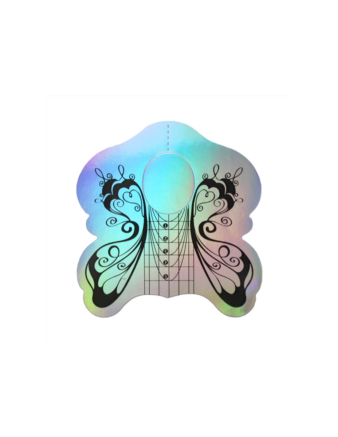 Şabloane pe suport de polimer tip "fluture" pentru extensia în formă ovala unghiilor . Flexibile şi aderente păstrează în mod ideal cubura necesară. Sunt gradate vizibil şi se pot folosi atât în construcţia sau prelungirea ungiilor.