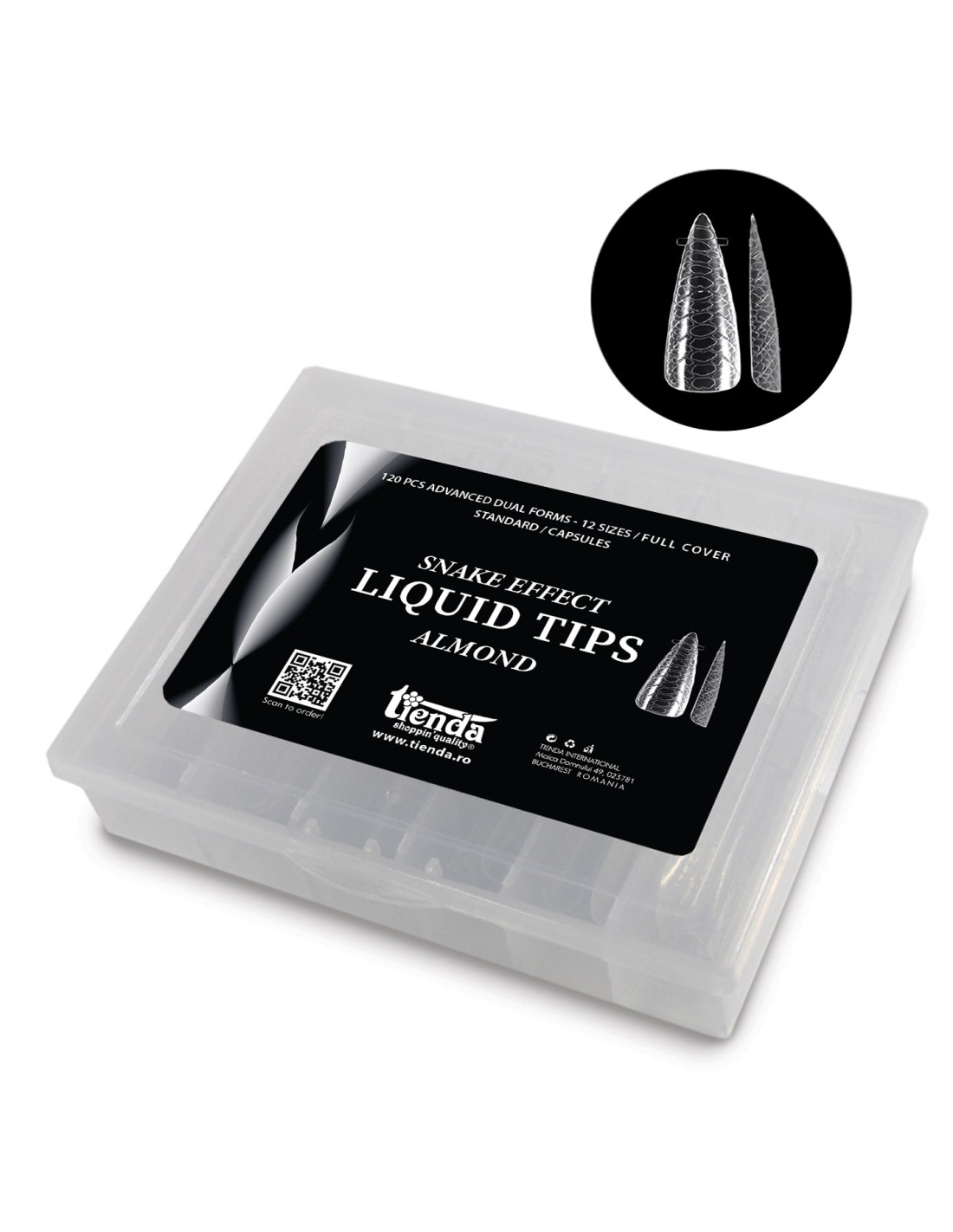Tipsuri speciale tip ”Capsule”, flexibile, reutilizabile, livrate la cutie de 120 bucăţi în 12 mărimi.