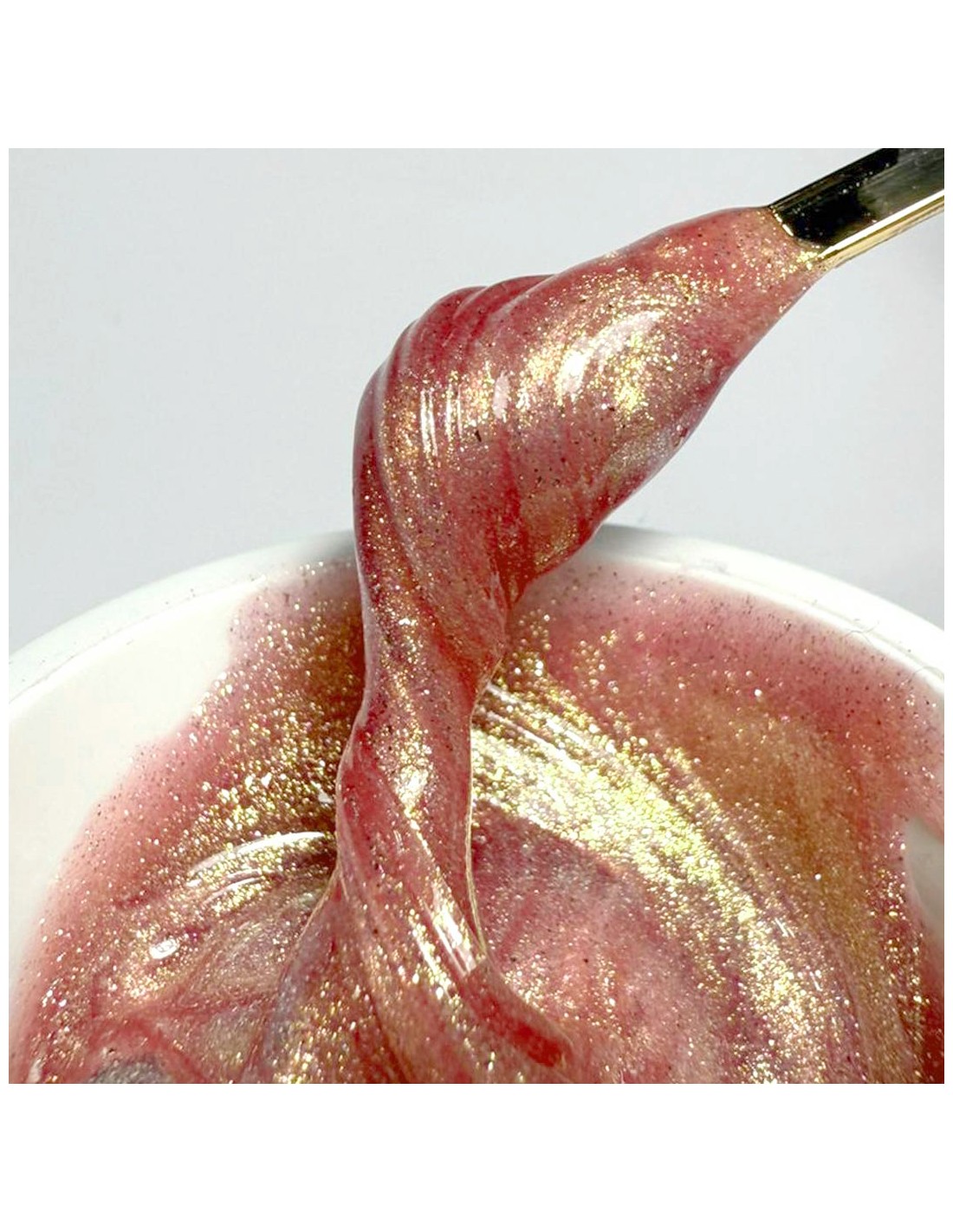 🌸 Culoare roz-nude cu sclipici fin auriu și efect perlat